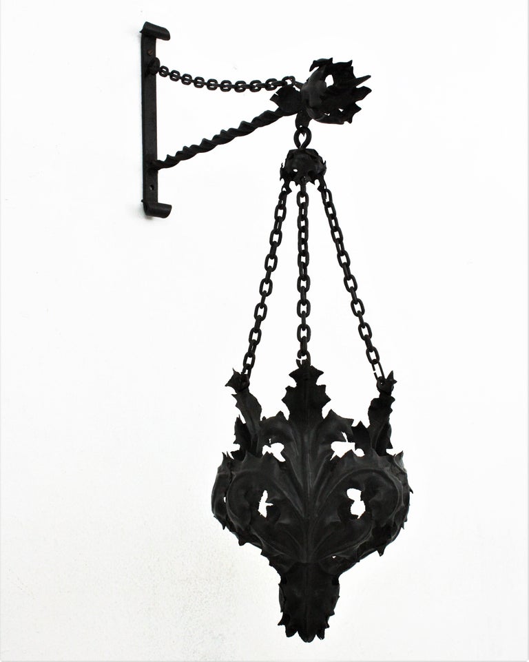 Spanish Wrought Iron Gothic Style Wall Hanging Planter With Foliage Motifs At 1stdibs
