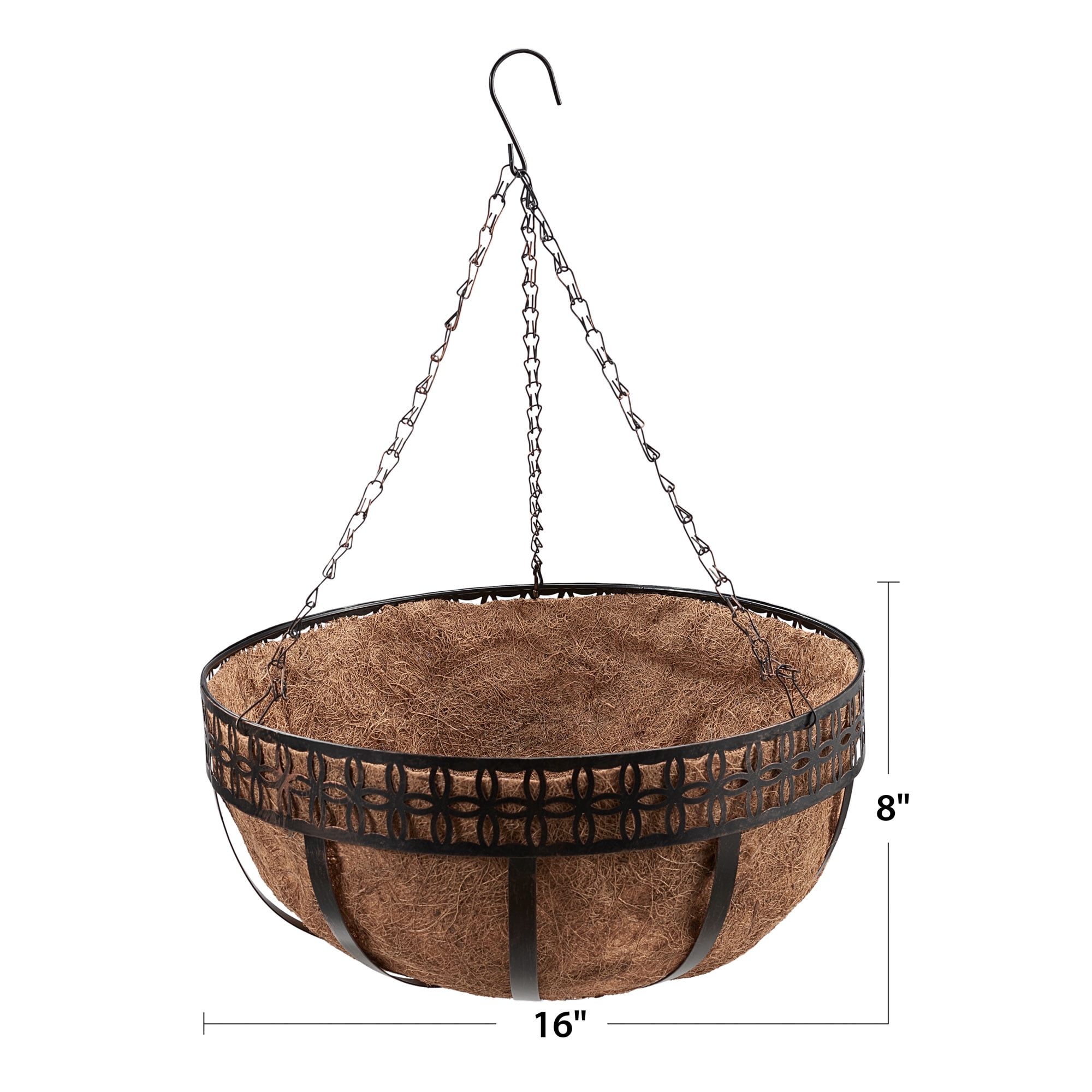 Mainstays 16 Inch Bronze Metal Hanging Plant Basket With Coco Fiber Liner Walmart Com