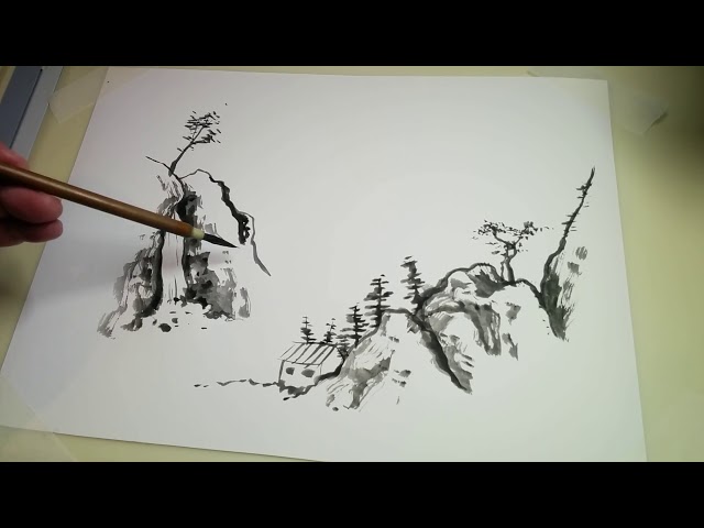 Japanese Sumi E Ink Painting Scene Youtube