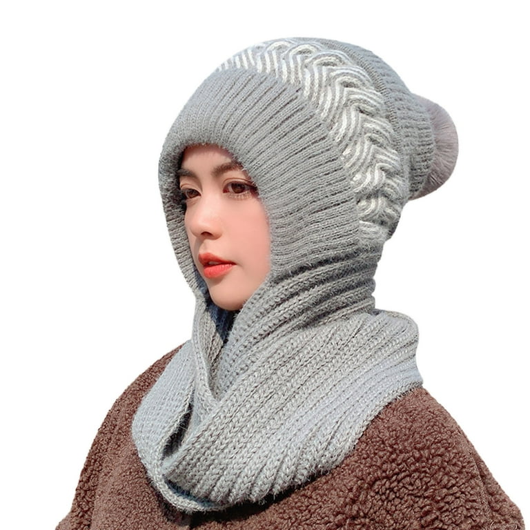 Women Hats Hat Cap Winter Knitted Rabbit Skullies Fashion Baseball Caps Neck Scarf Women Grey At Amazon Women S Clothing Store